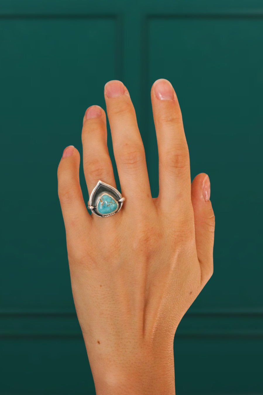 Sa forme singulière et sa turquoise éclatante apportent une touche rock remarquable à ton look.